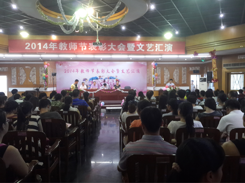 9月10日下午,值第三十个教师节之际,郴州市第一人民医院隆重举行了2014年庆祝教师节表彰大会暨文艺汇演,湘南学院校长曹石珠先生、副校长黄晓萍女士、副校长黄小益先生、教务处处长兼校长助理高守平先生、科研处陈冬林副处长,郴州市第一人民医院党委书记尹辉平、分管院长王诚丽还有南院、北院、中心医院领导和科主任;12个教研室主任、教学秘书、教学专干以及实习、进修、临床班和研究生班、全科医生培训班的学员代表200多人,共同庆祝这一节日。